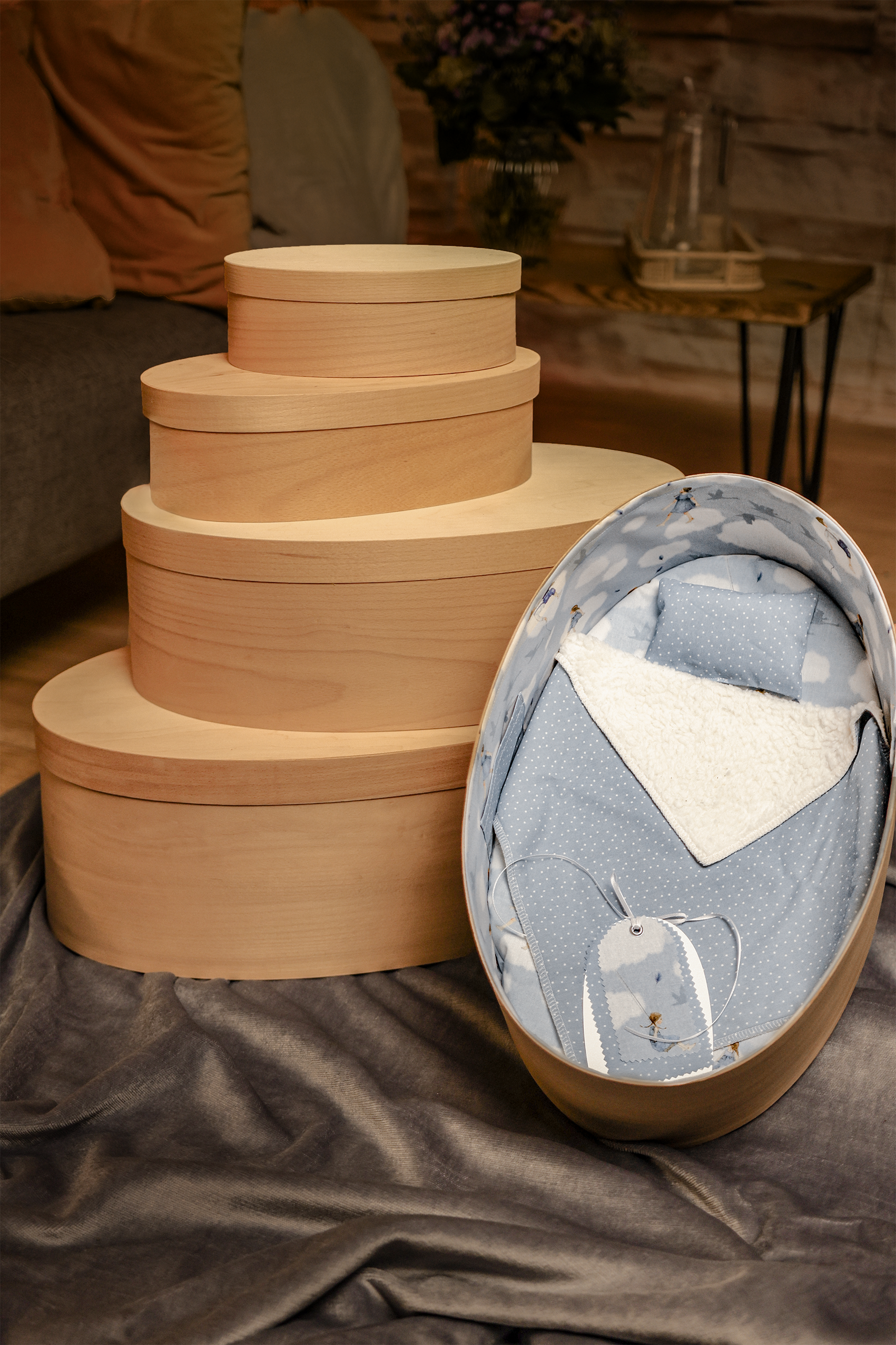 Das Nestchen® ist ein Kindersarg, der speziell für Sternenkinder entwickelt wurde. Es ist in fünf verschiedenen Größen und Stoff-Zusammenstellungen erhältlich. In allen Bundesländern Deutschlands ist es für die Beisetzung zugelassen. Im Inneren befindet sich eine kleine Tasche für ein Abschiedsbriefchen und Gaben an das Kind.